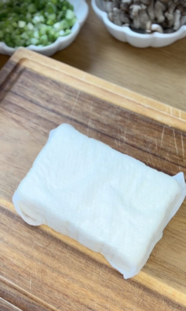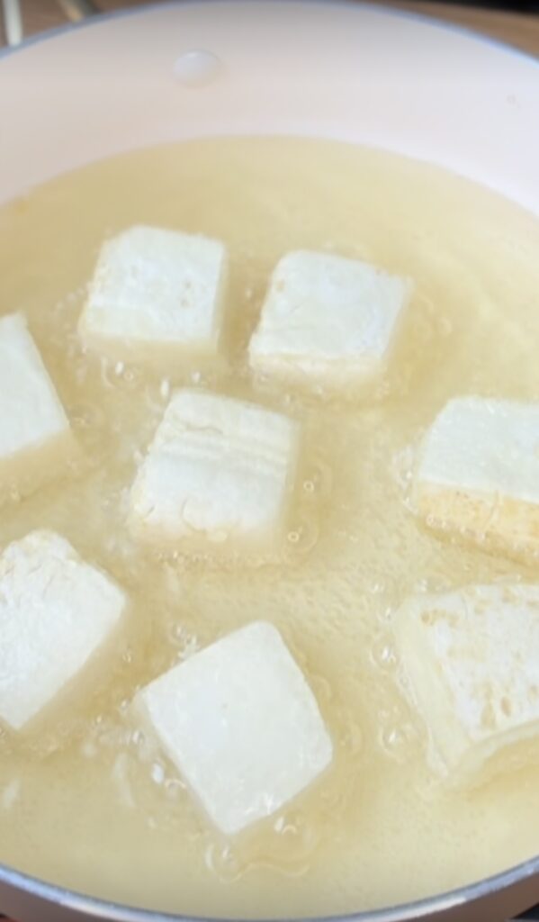 - Microwave the tofu first to remove moisture → crispier result + less oil splatter