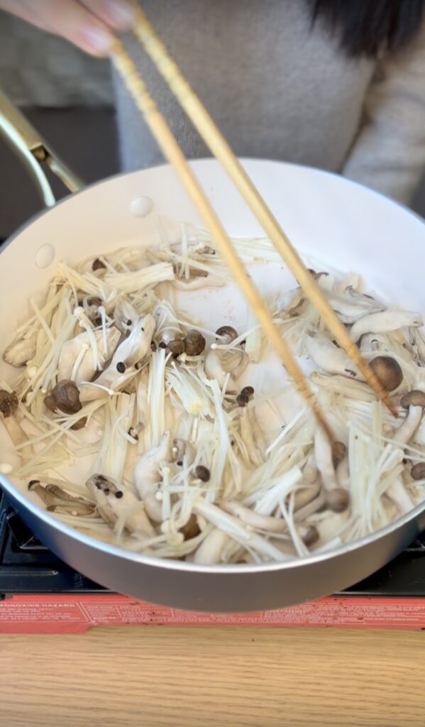- Shimeji & enoki mushrooms create a naturally savory, umami-rich sauce
