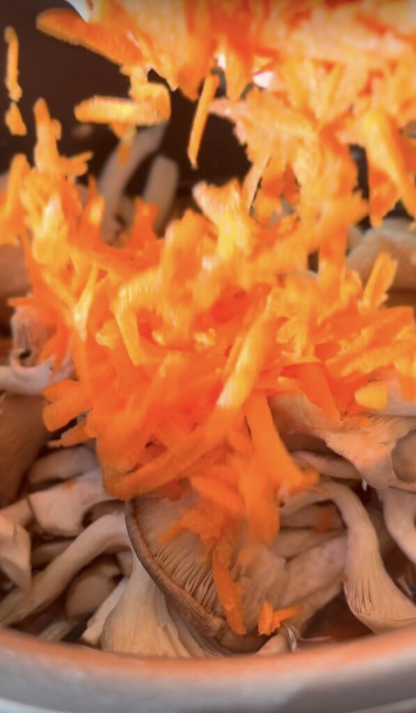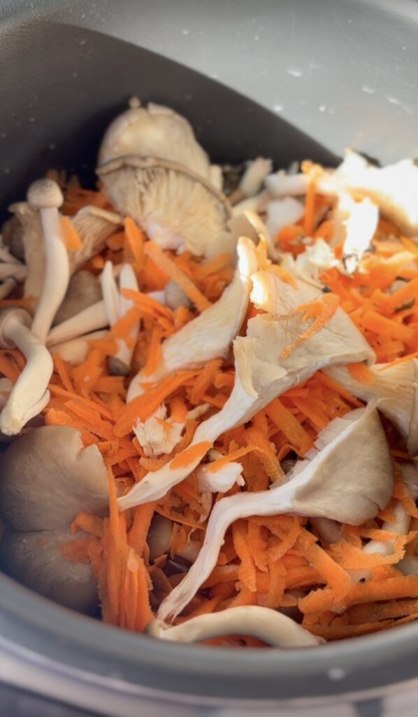 - Add chicken, mushrooms, and carrot on top.