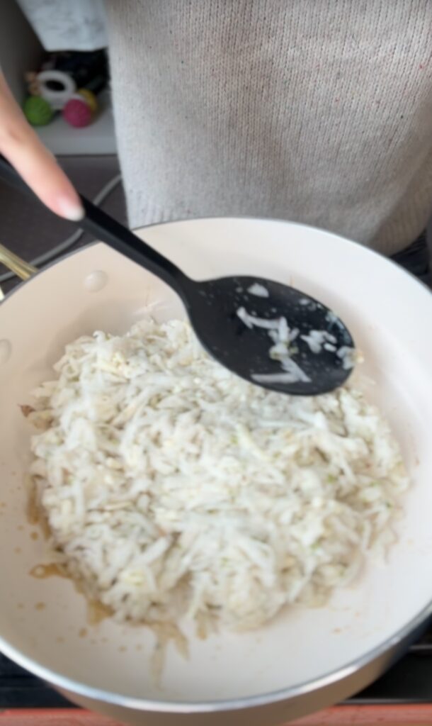 - Squeeze out excess moisture from daikon → helps it crisp up better
