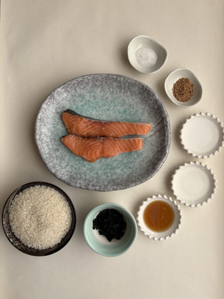 - Just 3 ingredients: Salmon, wakame, rice. That’s it.