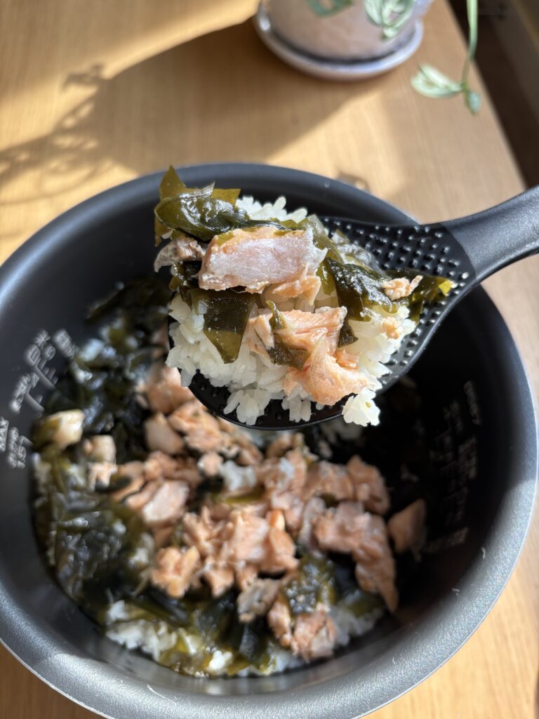 - Can I make this without a rice cooker? Totally. Use a regular pot—just cook rice as usual, add salmon and wakame, and steam together.